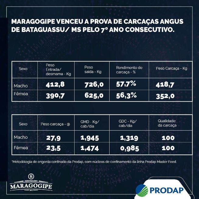 De acordo com o coordenador regional do Programa Carne Angus Certificada, Maychel Borges, a conquista da Maragogipe resulta do controle perfeito que o criador tem do seu plantel. “Eles sabem alinhar muito bem a escolha da genética com o protocolo nutricional. Isso faz que a propriedade apresente números impressionantes a cada ano que passa”, destaca. Segundo o coordenador, o Mato Grosso do Sul sempre foi um estado que se preocupou muito com a qualidade da carne produzida, e a Angus se insere nesse contexto como uma ferramenta para tornar a carne sul-mato-grossense uma das mais apreciadas pelo consumidor de cortes de qualidade. “Esse estado é um dos que mais usa genética Angus, levando maior rentabilidade ao produtor rural”, afirma.