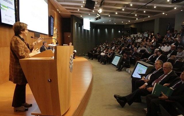 A ministra destacou a importância do evento para a agricultura brasileira na construção de um seguro que garanta não só o pagamento dos financiamentos bancários quando o produtor estiver com problemas, mas que garanta renda para ele sobreviver durante o ano.