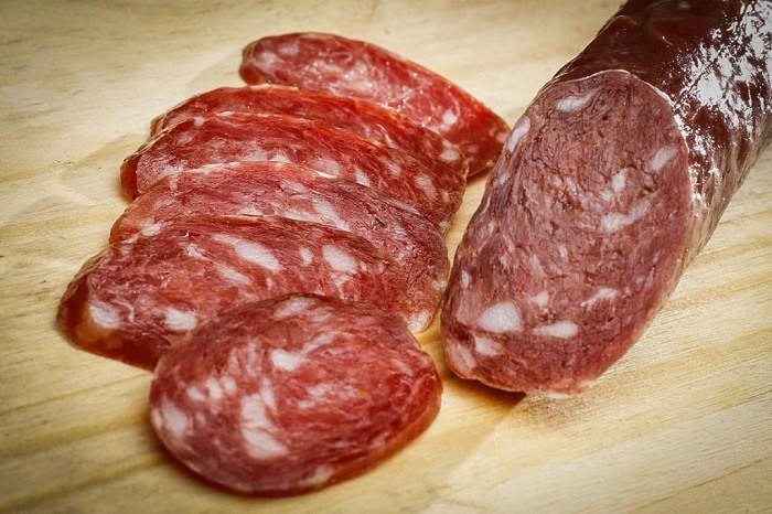 “A sobrepaleta suína ou copa lombo é uma carne sensível, pouco conhecida, e que precisa de zelo no momento da moagem. Ela possui gordura suficiente para produção do salame. Depois de moída, o ideal é acrescentar 25 gramas de sal por quilo de carne”.