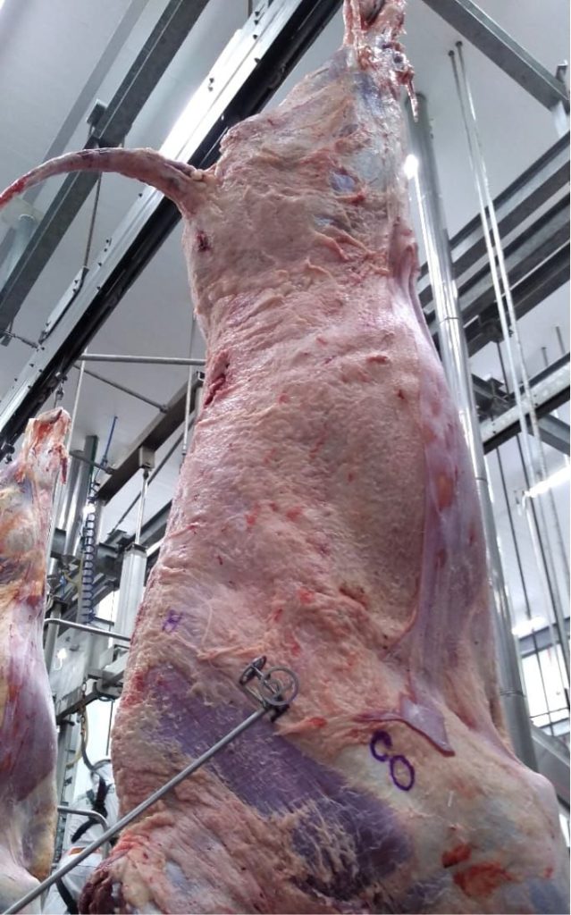 O abate reuniu 75 animais das raças Hereford e Braford oriundos da propriedade do criador Fernando Vigano, localizada no município de São Bernardino (SC). A média das carcaças do lote abatido foi de 200 quilos para as fêmeas e 227 quilos para os machos, com predominância de animais dente de leite (zero dentes) e acabamento de gordura entre mediana e uniforme.