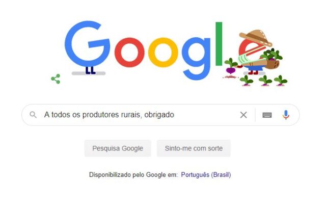 “A todos os produtores rurais, obrigado”, diz o site de buscas a todos os seus internautas nesta sexta-feira