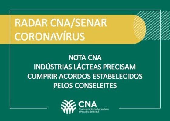 A Confederação da Agricultura e Pecuária do Brasil (CNA) reafirma a necessidade do cumprimento, por parte das indústrias lácteas brasileiras, dos acordos estabelecidos pelos Conseleites no que se refere ao índice de preço a ser pago ao produtor rural.