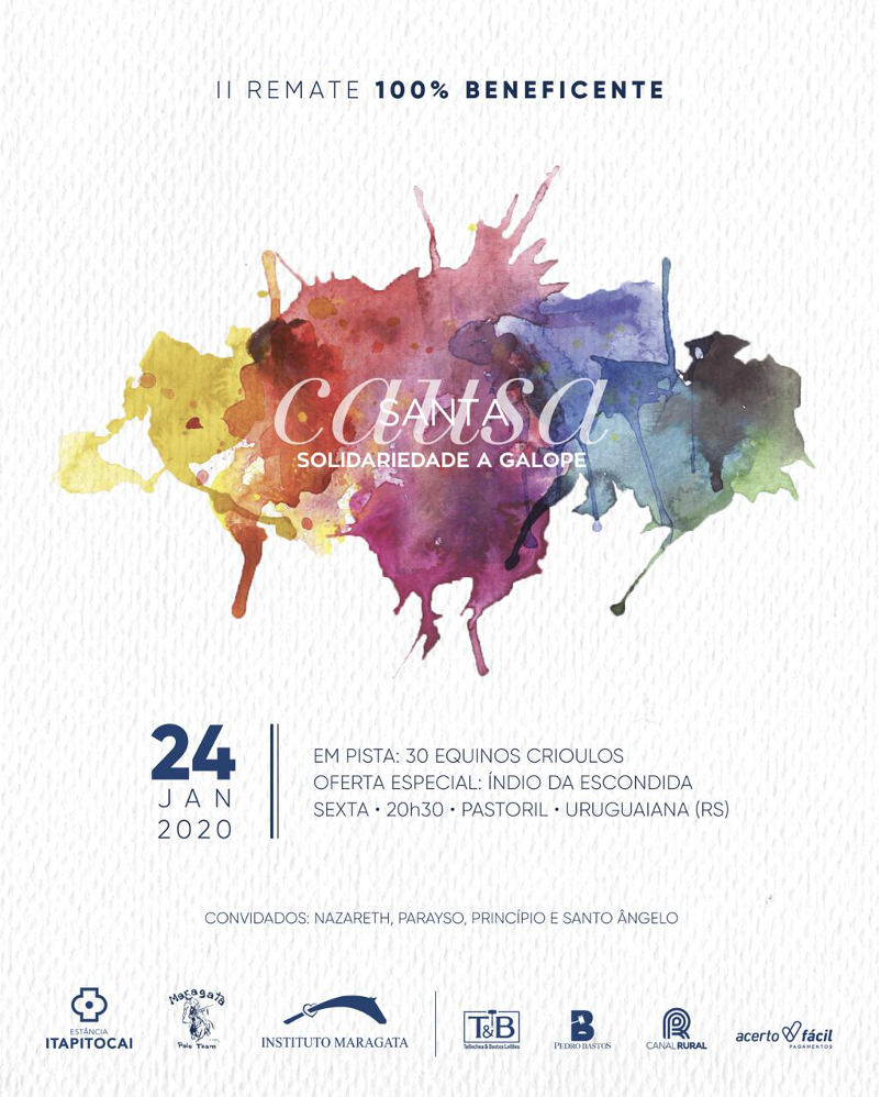 Lembrando que 100% da renda deste leilão será em benefício da Pediatria e da Maternidade da Santa Casa de Uruguaiana (RS) Com Acerto Fácil e Instituto Maragata a solidariedade e o jeito simples de pagar vem a galope