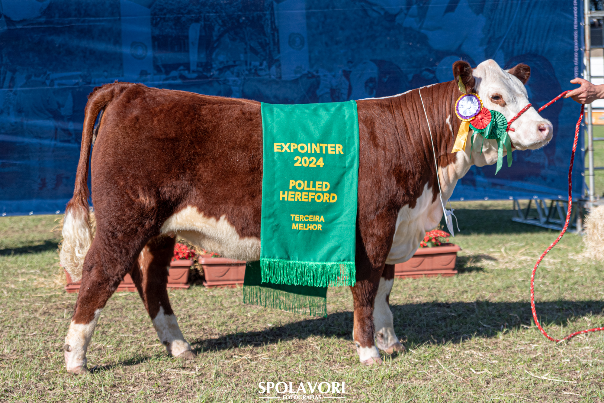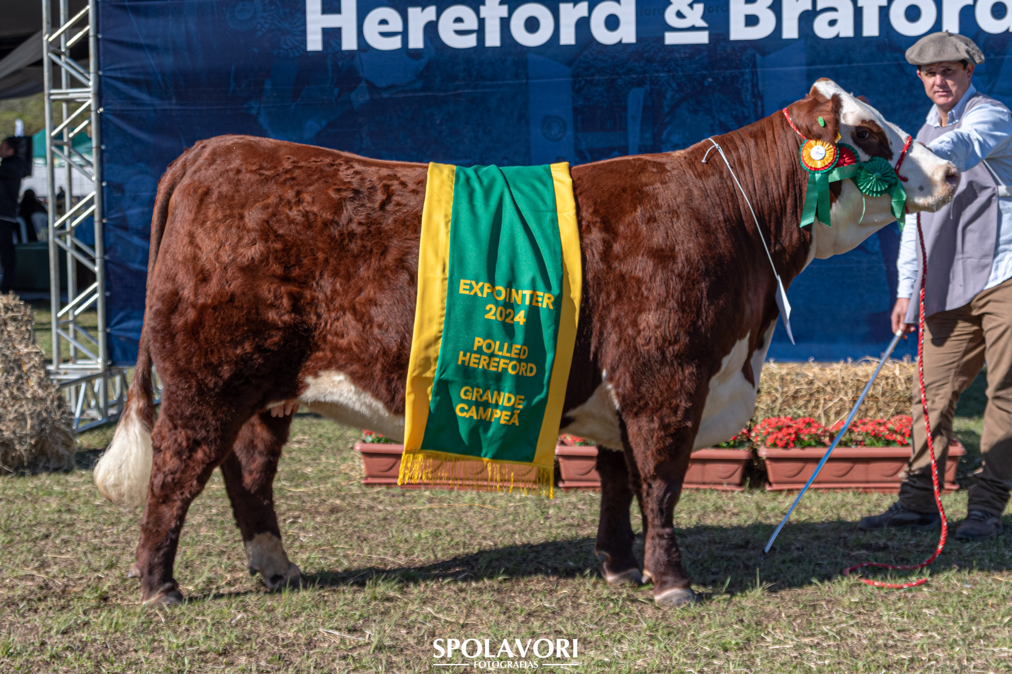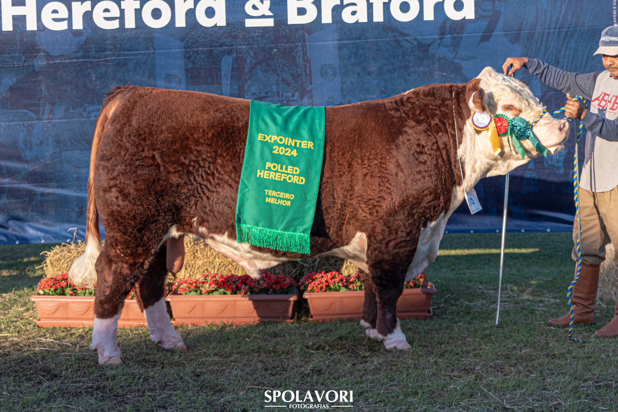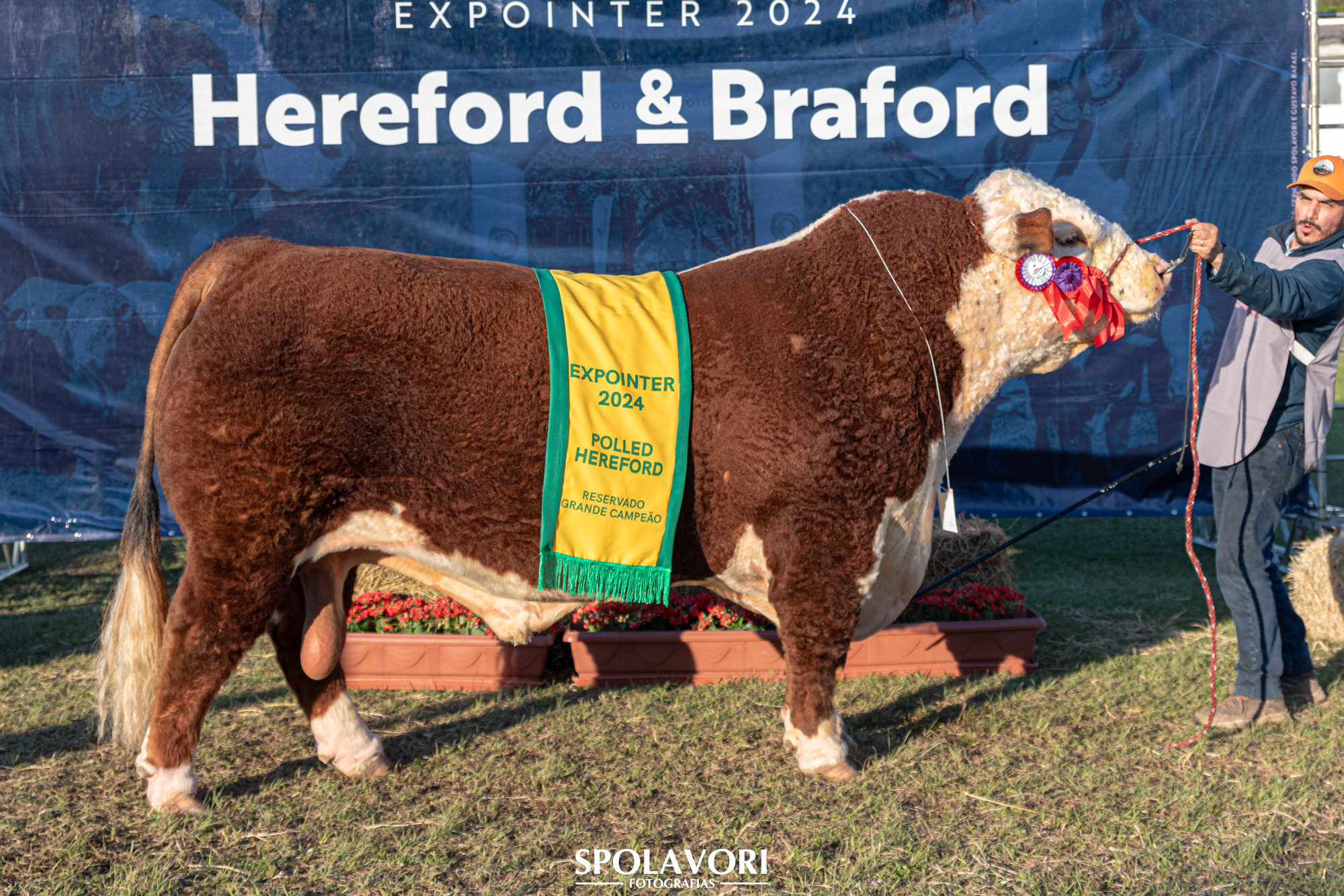 Entre os machos da raça, a parceria entre Cabanha Bortolozzo e Fazenda Rovaris, de Bom Jesus e Antônio Prado (RS), ganhou a preferência do jurado e se consagrou como Grande Campeão e Supremo Campeão Polled Hereford PO, com o exemplar TE34. O Reservado Grande Campeão é o animal FIV2628, da Estância Anjo da Guarda, de Uruguaiana. E o prêmio de Terceiro Melhor Macho Polled Hereford PO, ficou com a Cabanha Moreira, com o exemplar FIV2100.