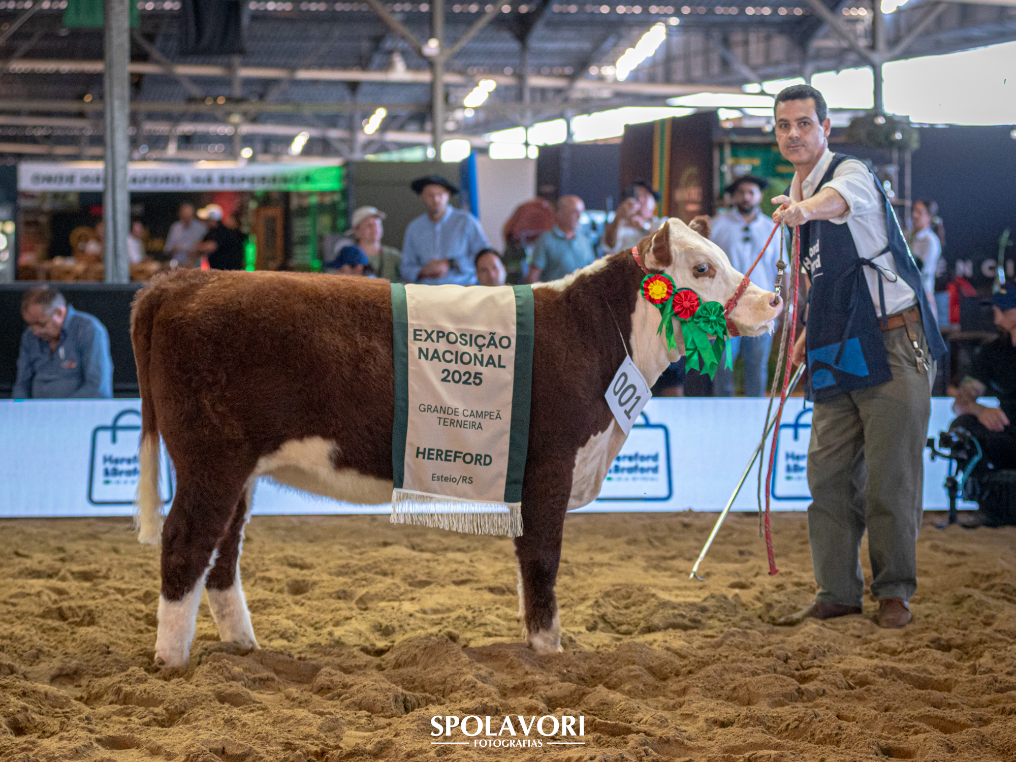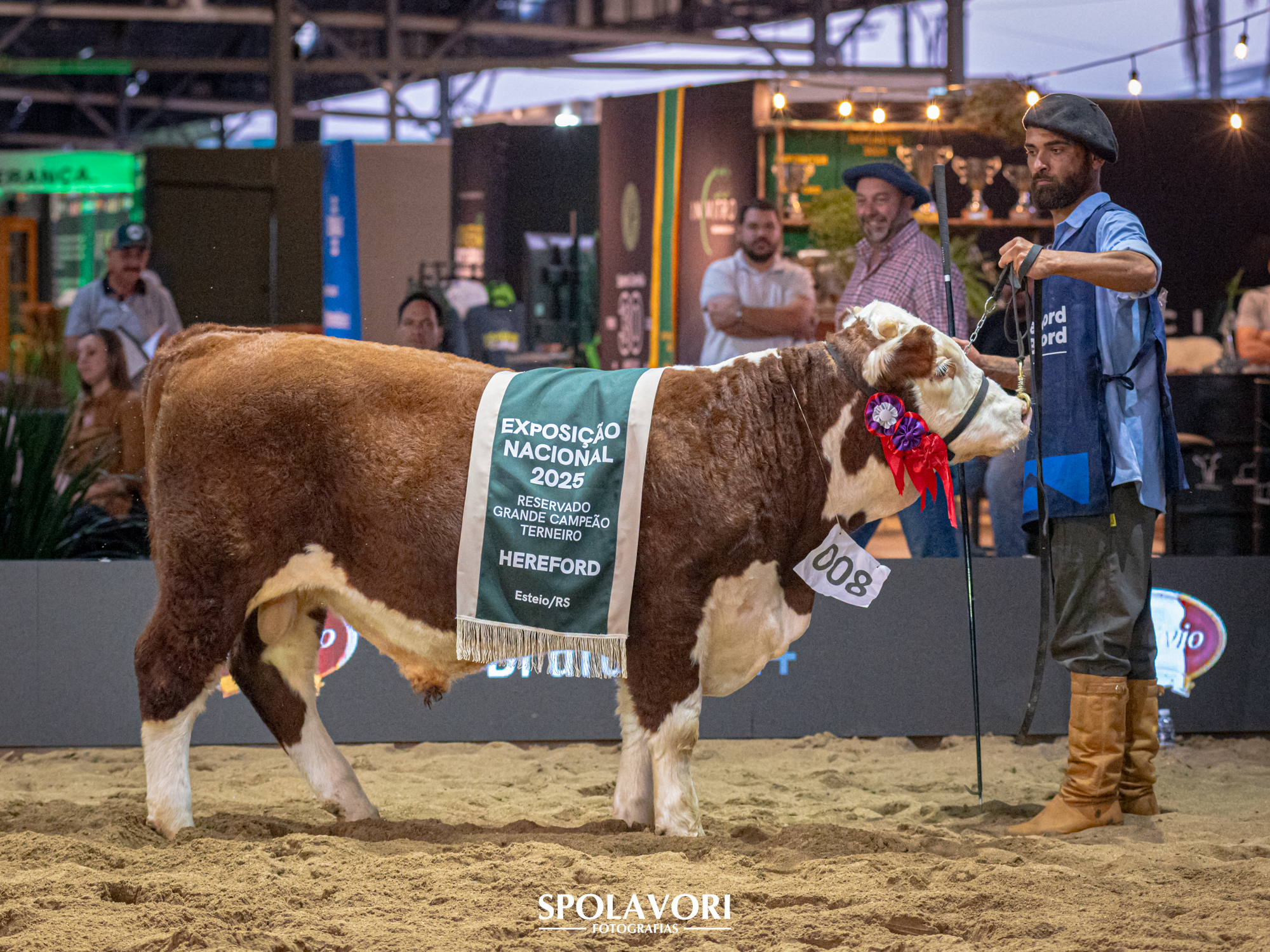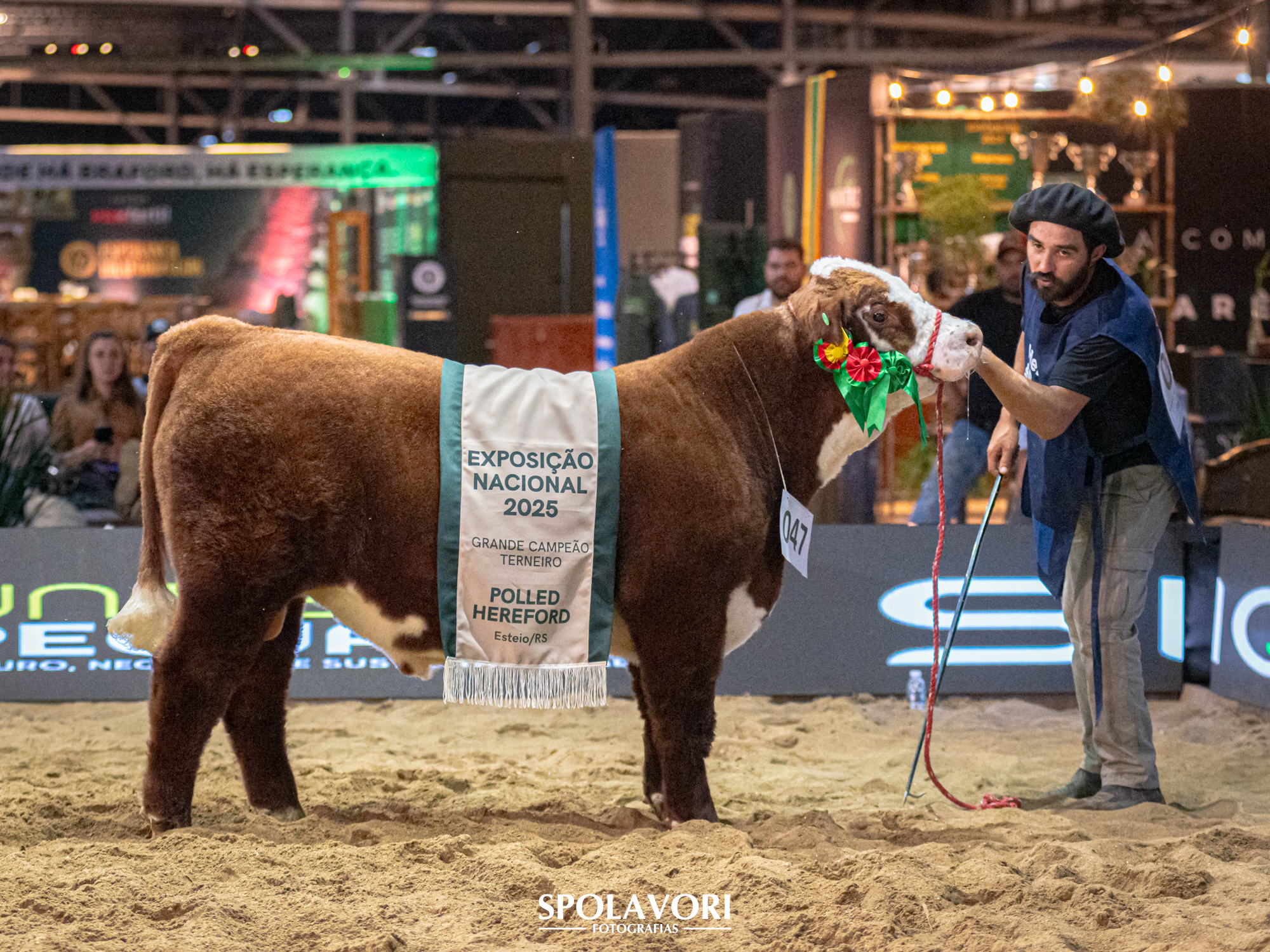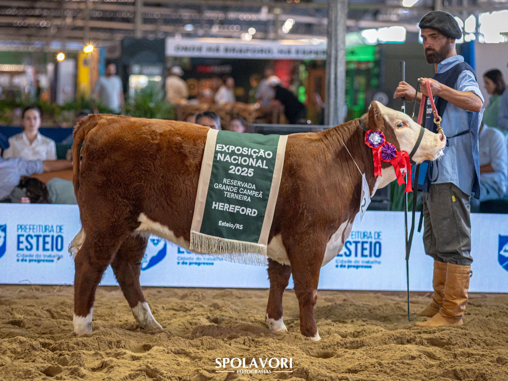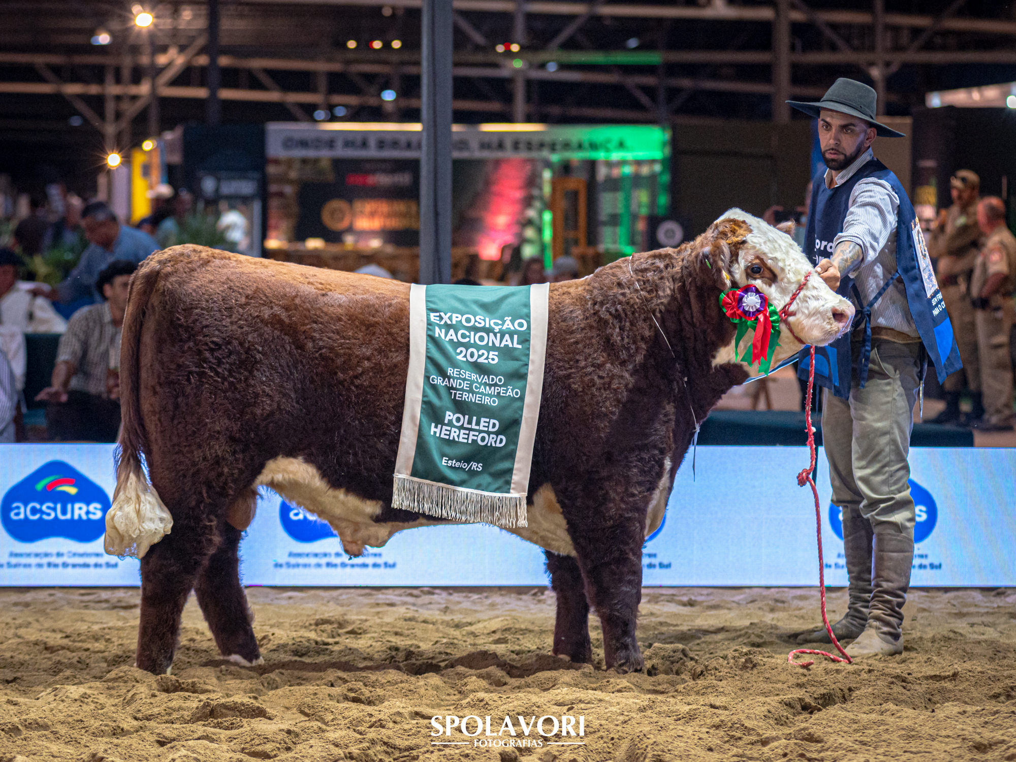 A Exposição Nacional Hereford, realizada no tradicional Parque de Exposições Assis Brasil, em Esteio (RS), foi palco de apresentações de altíssimo nível genético, reunindo animais de excelência na pista de argola. Entre os destaques da feira, os campeões terneiros das raças Hereford PO e Polled Hereford PO chamaram atenção, evidenciando o trabalho criterioso das cabanhas participantes.