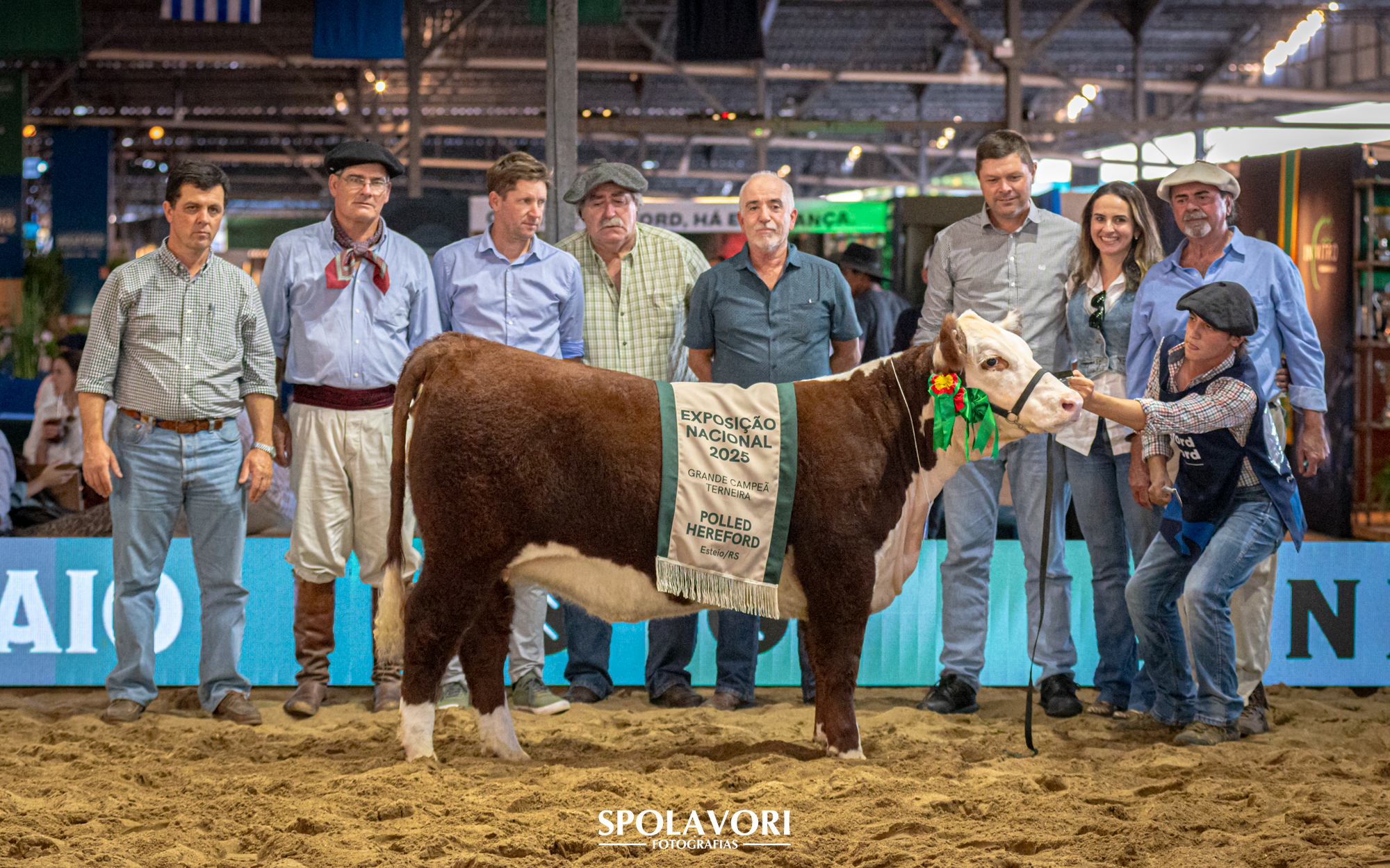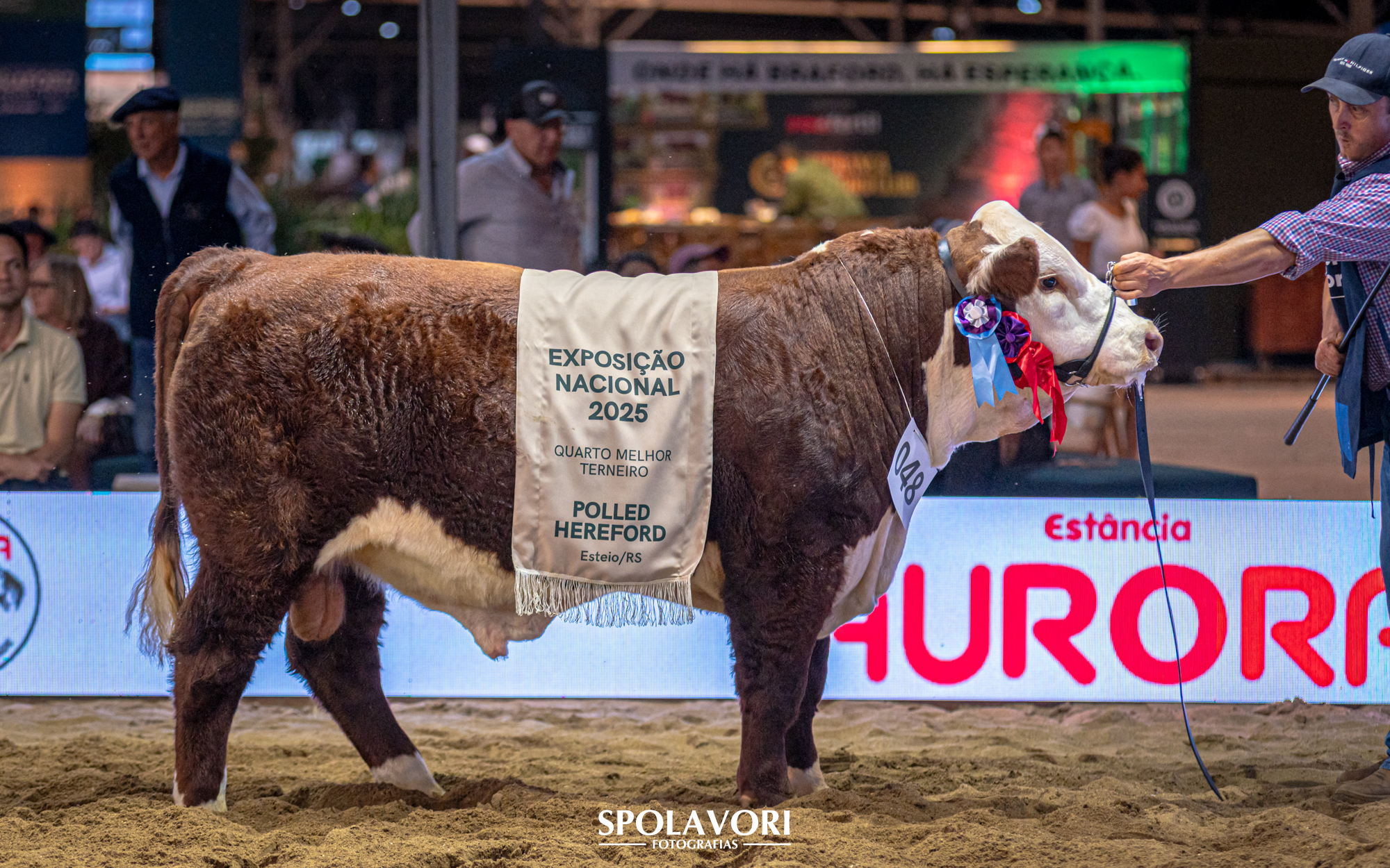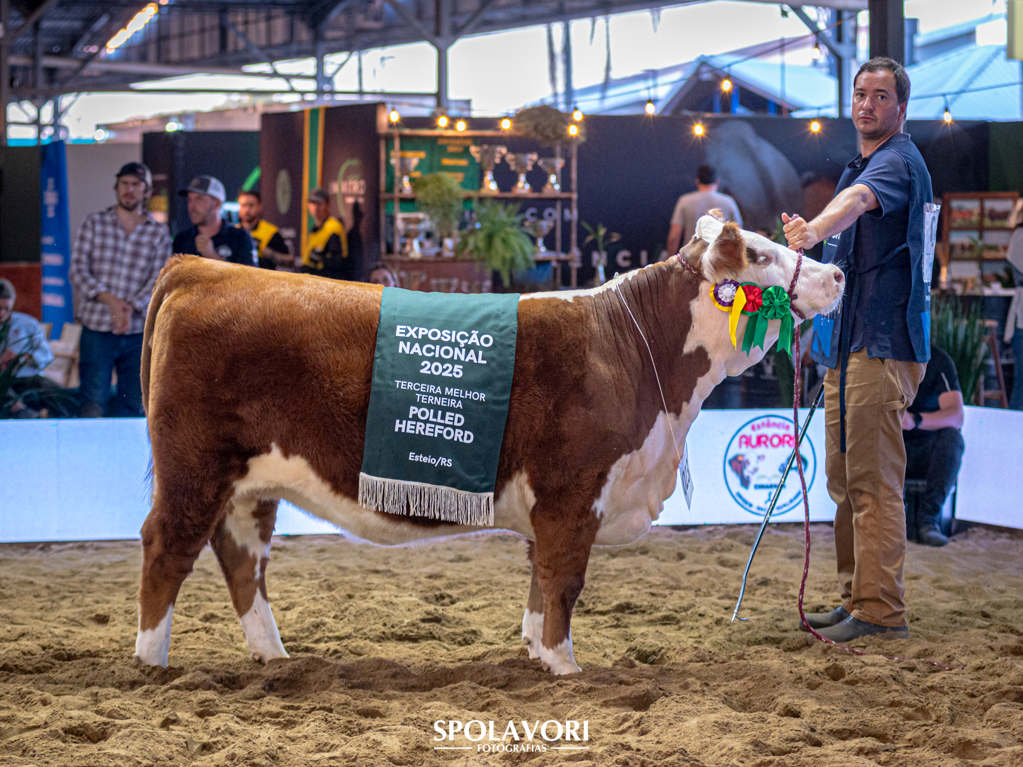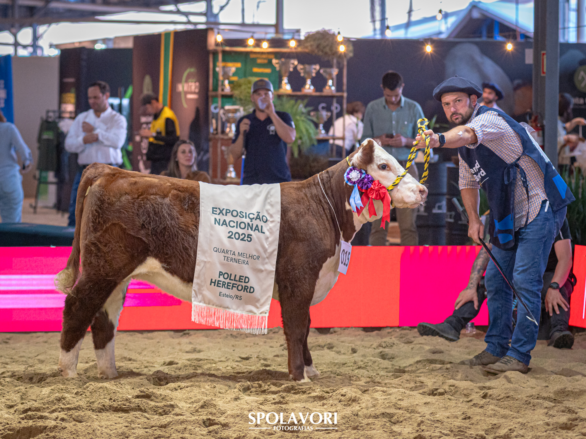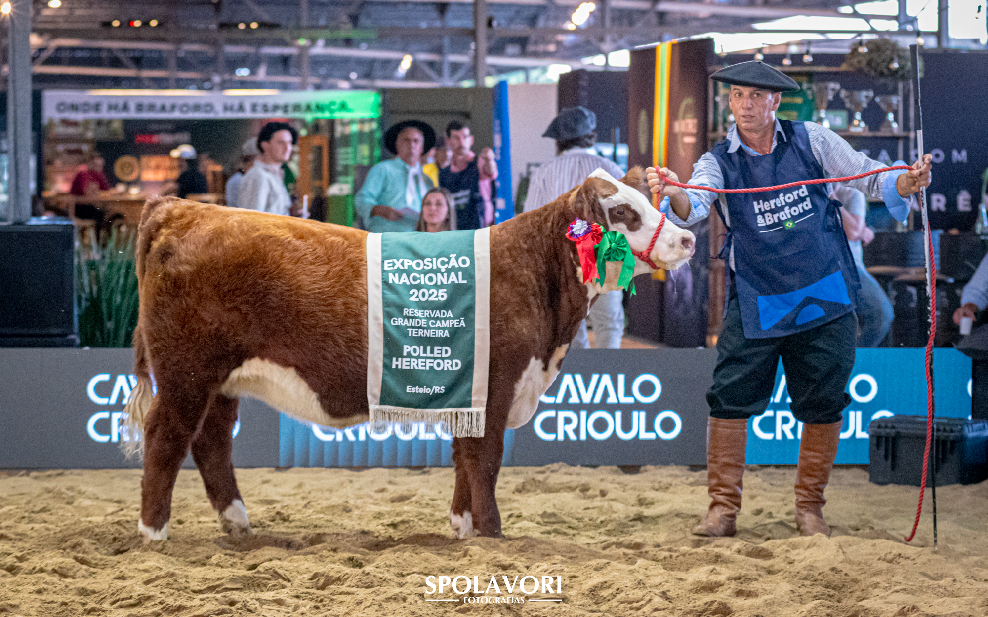 A Exposição Nacional Hereford, realizada no tradicional Parque de Exposições Assis Brasil, em Esteio (RS), foi palco de apresentações de altíssimo nível genético, reunindo animais de excelência na pista de argola. Entre os destaques da feira, os campeões terneiros das raças Hereford PO e Polled Hereford PO chamaram atenção, evidenciando o trabalho criterioso das cabanhas participantes.