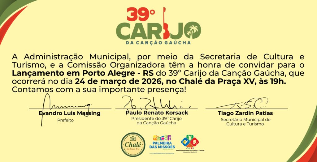 O Carijo mantém sua essência como espaço de valorização da música nativista, promovendo encontros entre artistas, público e a comunidade. O 39º Carijo será realizado de 23 a 31 de maio em Palmeira das Missões no Parque Municipal de Exposições Tealmo José Schardong.