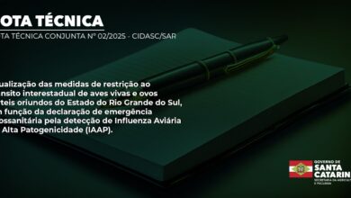 Nota Técnica: Santa Catarina intensifica medidas de defesa sanitária em atenção ao foco de Influenza Aviária no Rio Grande do Sul